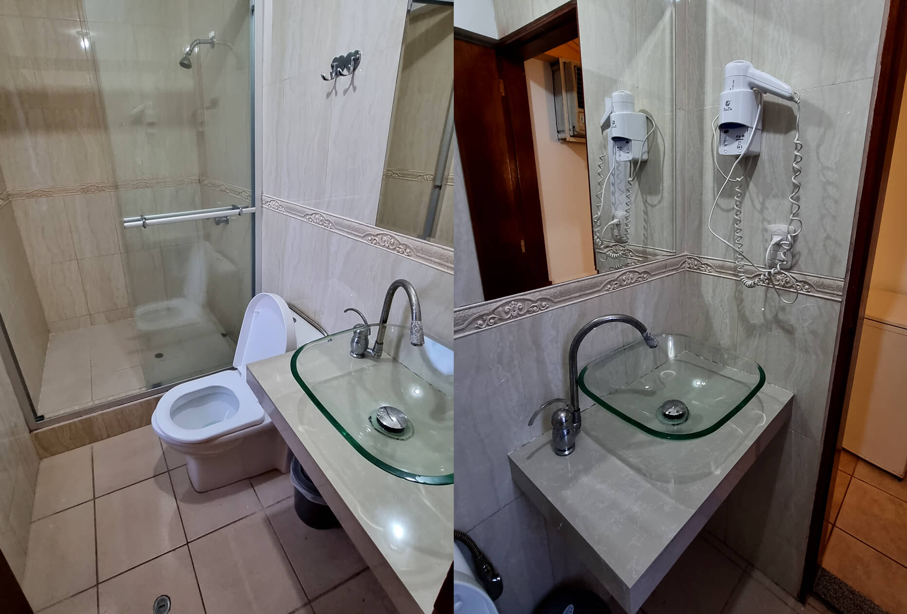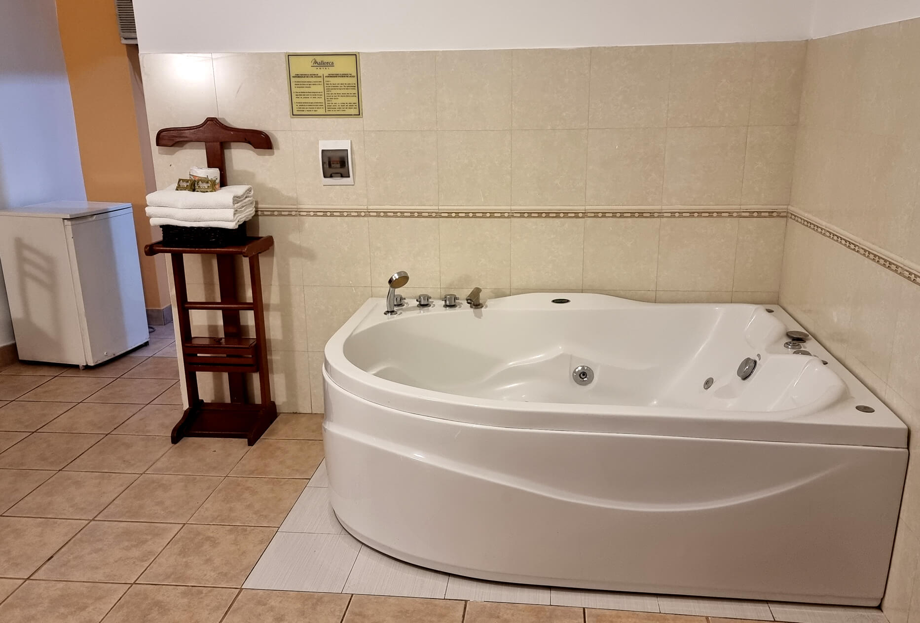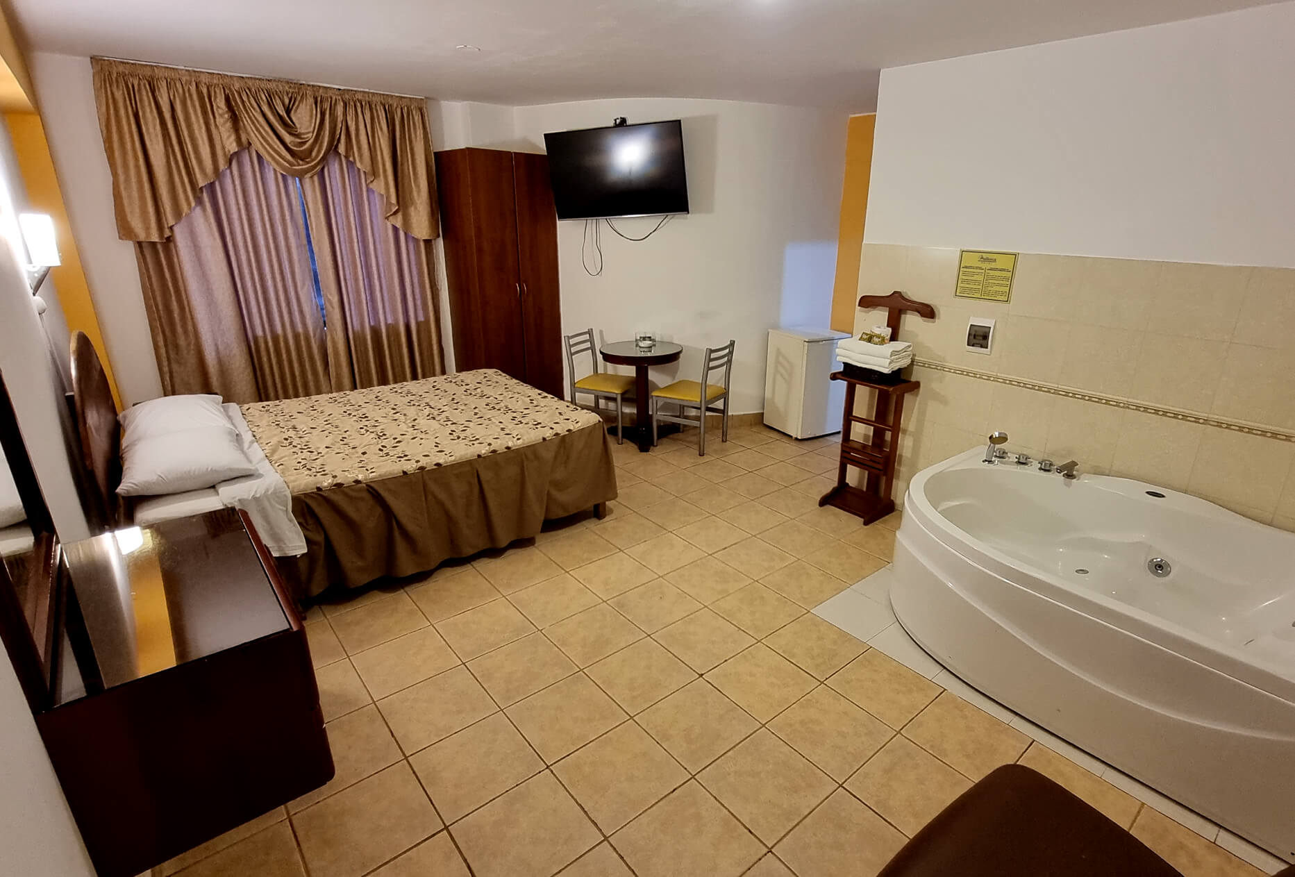 1 Cama de 2 plazas 1/2, friobar con bebidas dulces, tv smart de 55», ducha de pie, un jacuzzi, agua caliente, aire acondicionado , Ventana hacia la calle y Secadora de pelo.